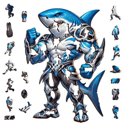 The Tidal Warlord - Sharks -Inspired Warrior Puzzle – Cronulla Rugby League Fan Gift-Wooden Puzzle