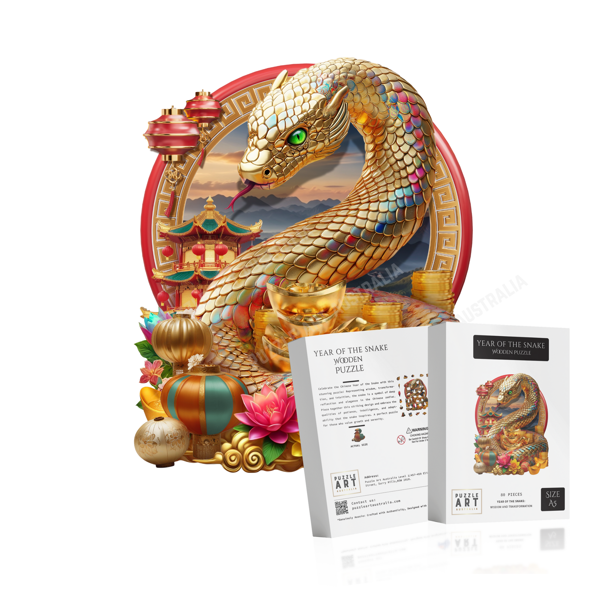 Celebrate the Chinese Year of the Snake with this stunning puzzle! Representing wisdom, transformation, and intuition, the snake is a symbol of deep reflection and elegance in the Chinese zodiac. Piece together this striking design and embrace the qualities of patience, intelligence, and adaptability that the snake inspires. A perfect puzzle for those who value growth and serenity.